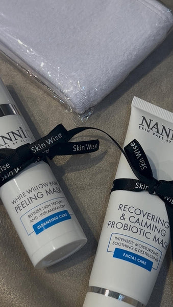 Includes: Nannic Willow Bark Peel 30ml (exfoliate) + Recovery Calming Mask 50ml (nourish) + Headband. Our top-selling duo pairs gentle exfoliation with deep nourishment, leaving your skin refreshed, balanced and radiant. The perfect Chirstmas gift set.